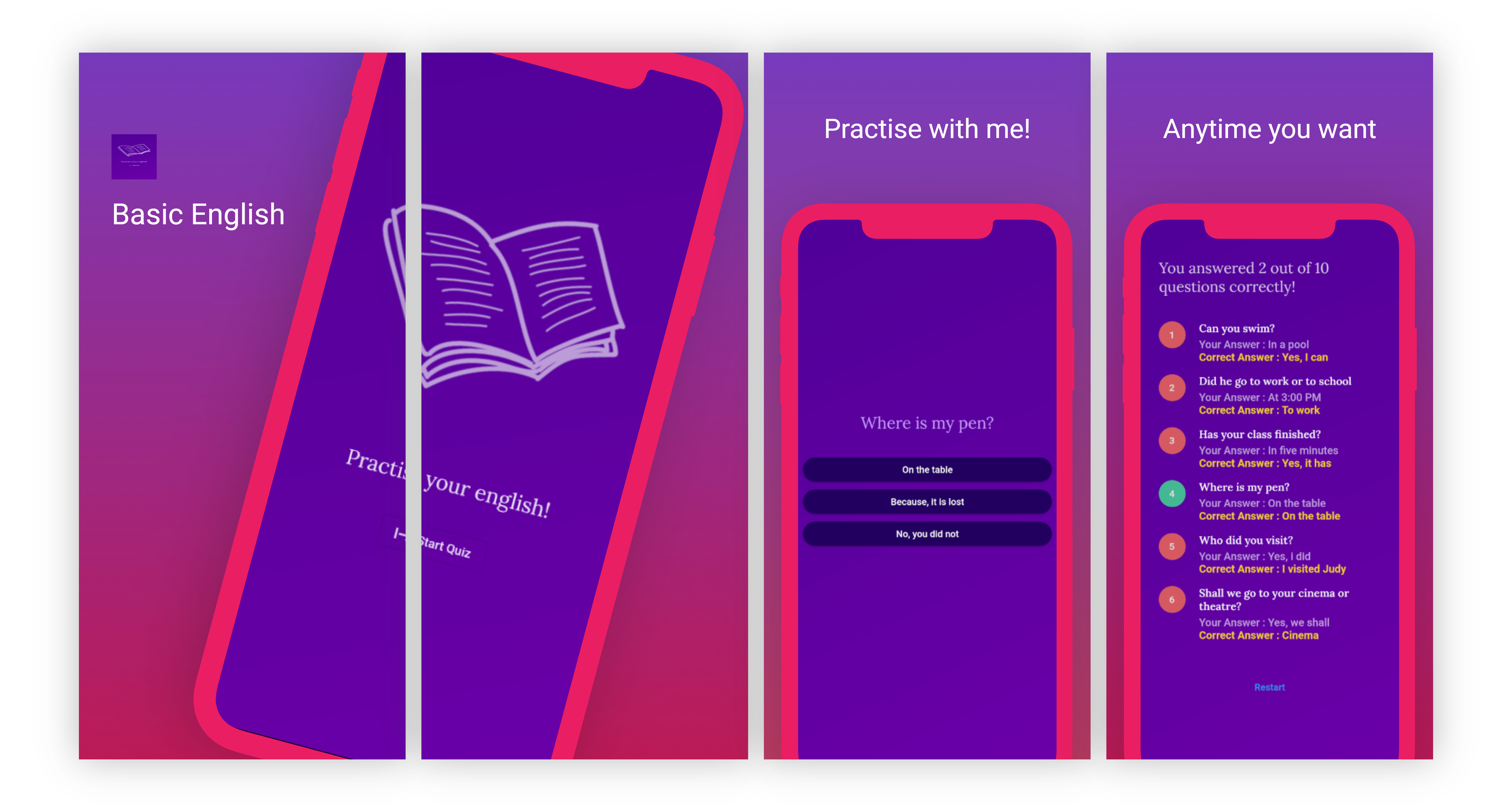 EnglishQuizzesDemo ile İngilizce dilini ustalıkla öğrenmeye adım atın. Bu interaktif İngilizce quizleri ve öz-değerlendirmeler için kullanabileceğiniz uygulama, başlangıç seviyesinde bir öğrenciyseniz veya dil becerilerinizi geliştirmek istiyorsanız tam da size göre.